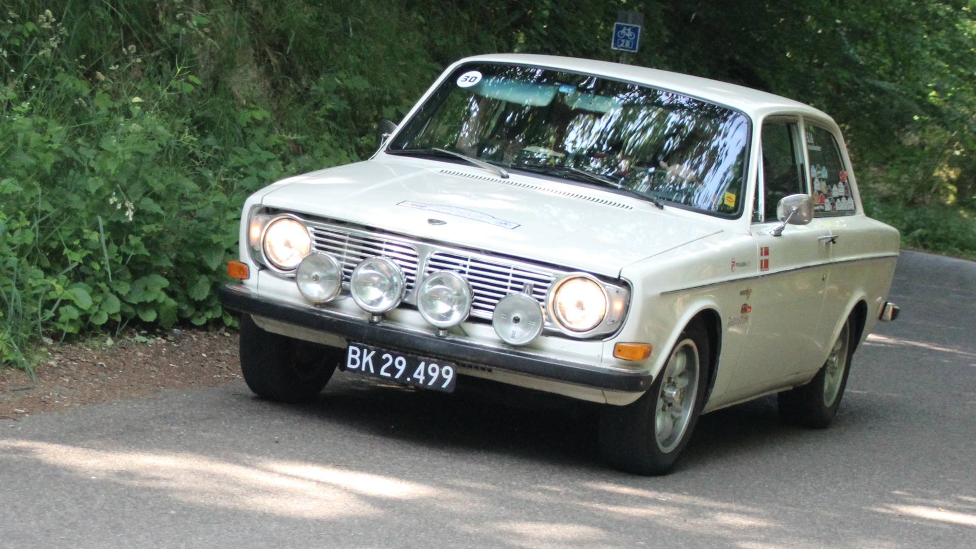 De førende i Elite klassen, brødrene Poul og Egon Brøndum fra Randers er her fanget på kameraet i 3. afdeling af DASU Classic Regularity mesterskabet der blev kørt med udgangspunkt fra Aars. (Foto: Bjarne Andersen)